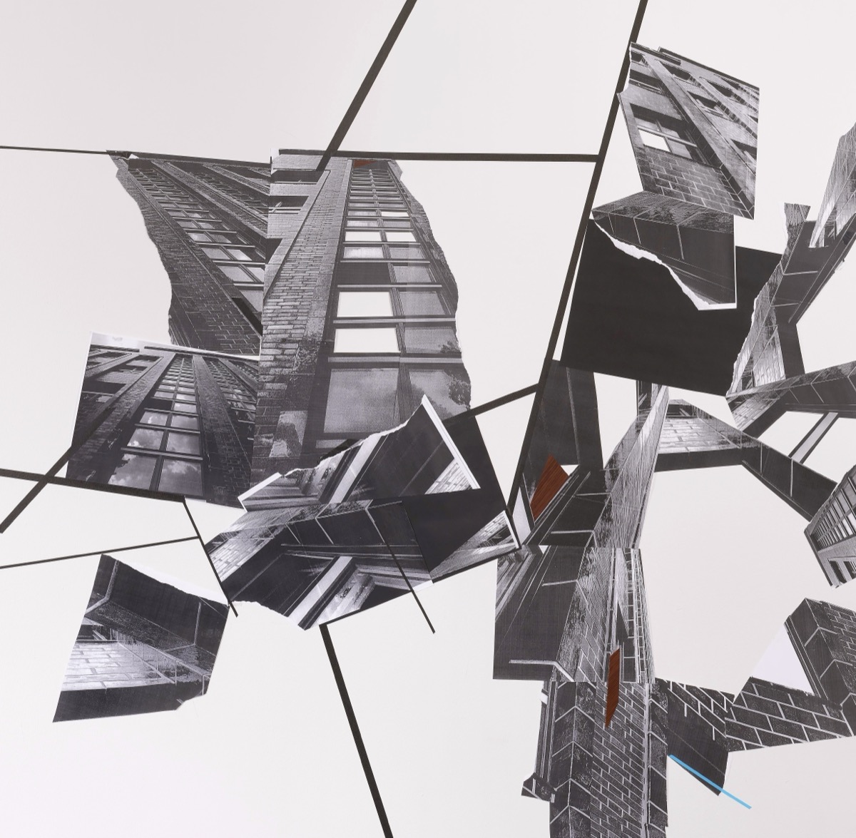 CUT!, Detail, Klebeband, Papier auf Wand, 2019.