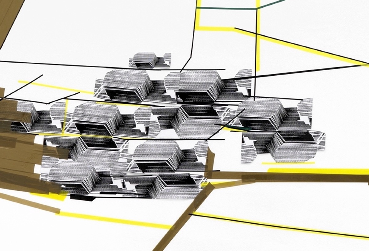 Wallpieces_12_Cluster, 9,00 m x 4,50 m, Klebeband Papier auf Wand, 2012.