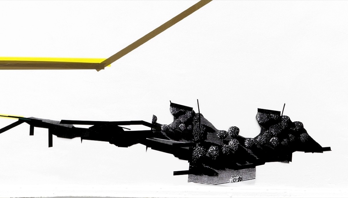 Bergbaufolgelandschaft, 4,20 m x 9,00 m, Klebeband auf Wand, 2025