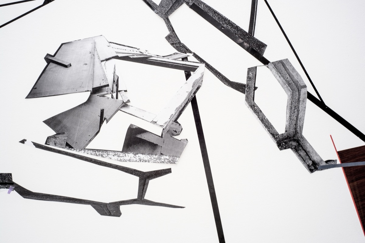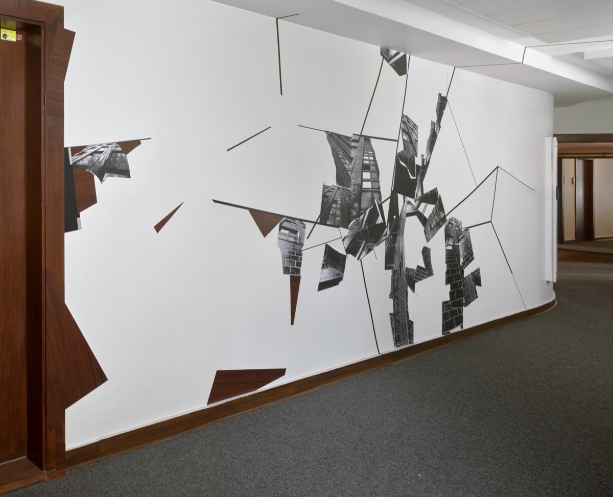 CUT!, Detail, Klebeband, Papier auf Wand, 2019.