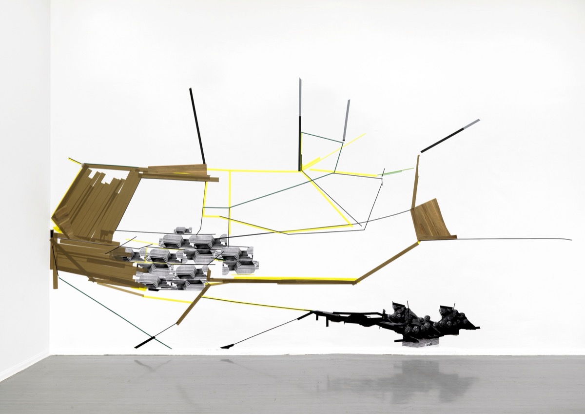 Wallpieces_12_Cluster, 9,00 m x 4,50 m, Klebeband Papier auf Wand, 2012.